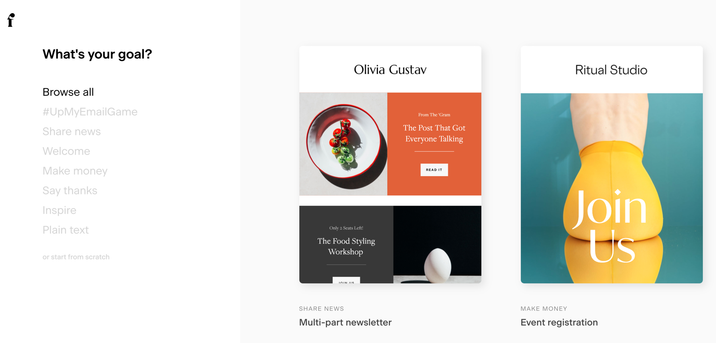 In Flodesk, head to Emails > New Email and select a template that works for your needs.