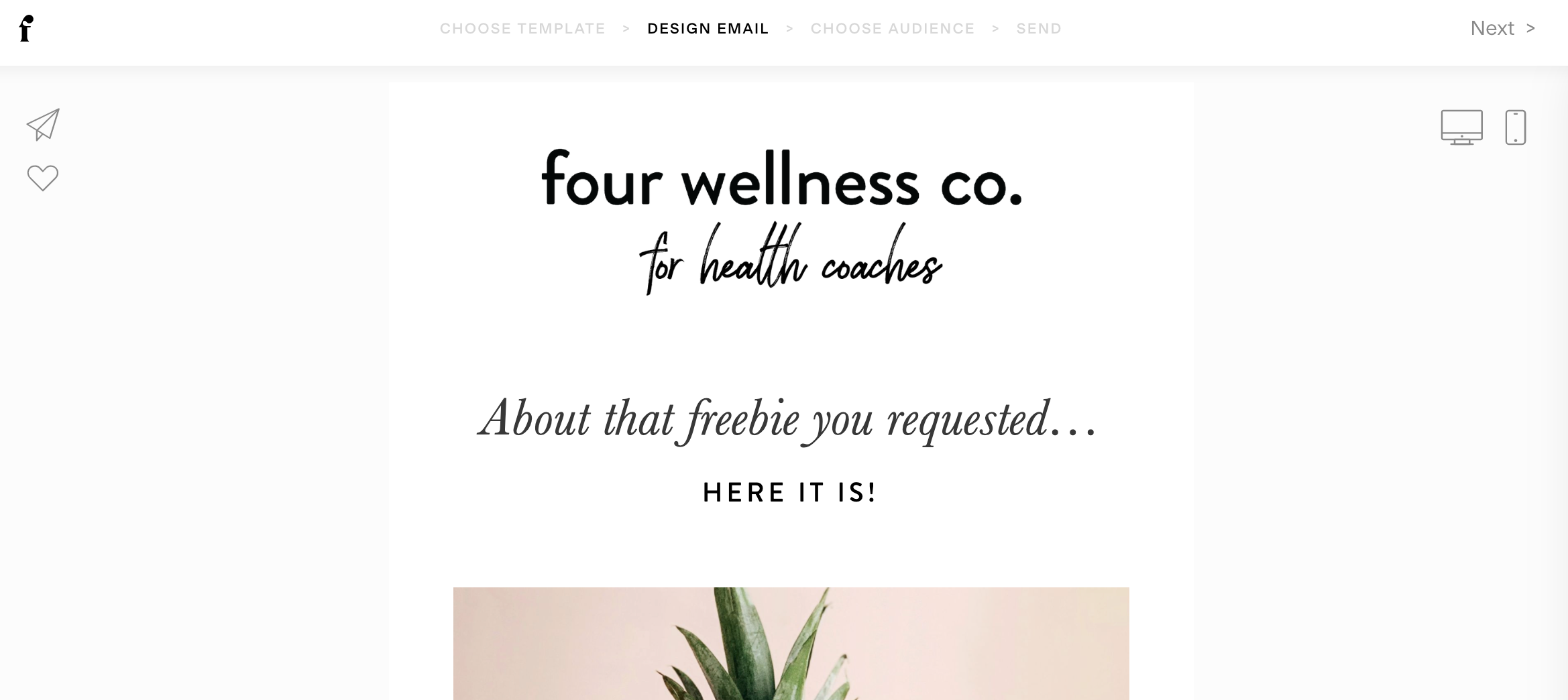 Once you’ve chosen your email platform, connected it to your website opt-ins, and set up your welcome automation, it’s time to draft a template for your wellness newsletter!