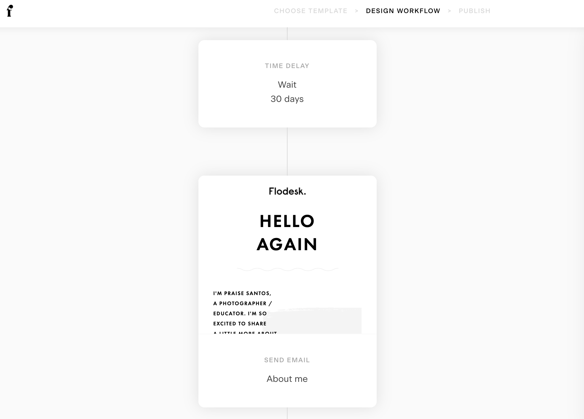 The number of emails in your automation may vary depending on your business needs. If you have lots and lots of content and information to share with new subscribers, you may want to use 4-6 emails in your welcome series. If you prefer to keep it simple and stick to a welcome message plus a couple check-ins, you could stick to just one welcome email and a follow-up check-in email a week or so later. Your call.