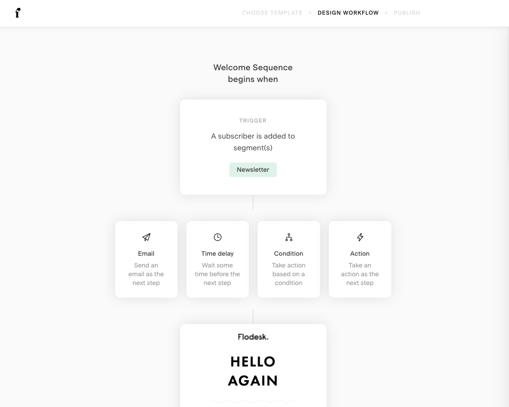 Flodesk is structured around “Workflows,” or automated sequences of triggers, emails and other actions.